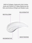 With its content rich in collagen, hyaluronic acid, amino acids and vitamin E, it helps moisturize the skin and achieve a bright and glowing look.